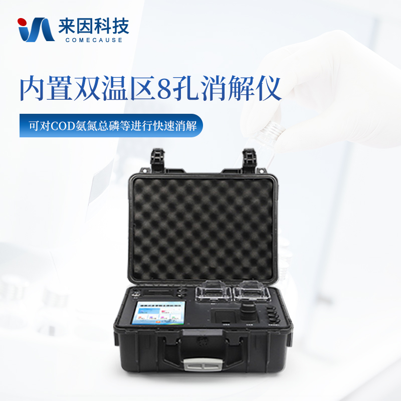 4、内置双温区8孔消解仪,左右温区独立控制,可对COD总磷总氮等进行快速消解。